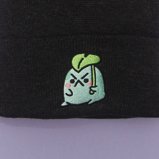 Angy Frog Leaf Pom-Pom Beanie in Black