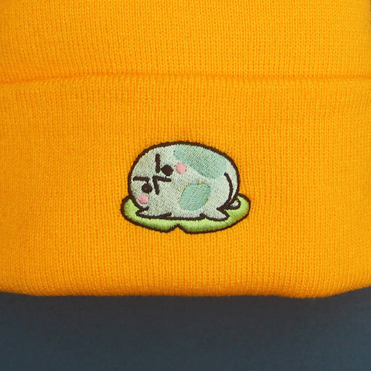 Angy Frog Lily Pom-Pom Beanie in Yellow