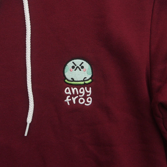 Angy Frog Embroidered Hoodie in Maroon (UNISEX)